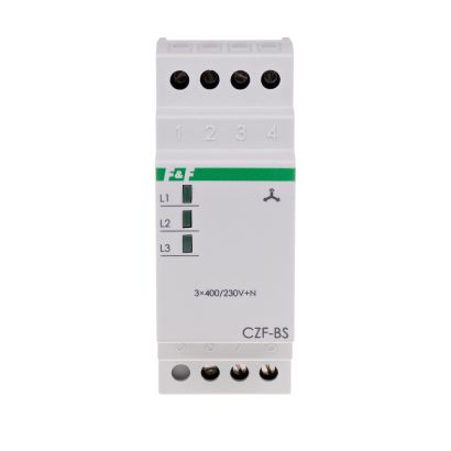 The phase sequence and phase loss sensor is designed to protect electric motors and other equipment supplied from a three-phase mains. The sensor will trip when the voltage on one or more phases falls below a set minimum value or exceeds a set maximum value. The CKF-320-TRMS also controls the phase sequence of the supply, preventing the motor from spinning in the wrong direction.