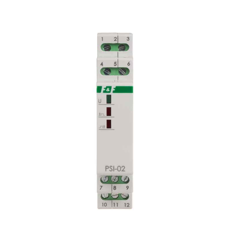 After the application of the control signal to the UST input (leading edge), the converter generates a pulse on output 12 (contact 11-12 closed for 1 second). After the decay of the control signal (trailing edge), the converter sends another pulse on output 9 (joint 8-9 closed for 1 second).