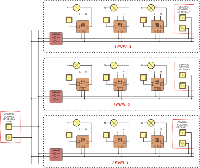 The BIS-412 230V is compatible with bell pushes equipped with fluorescent lamps.