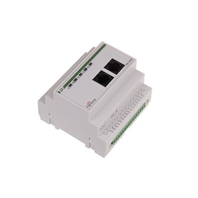 Signals applied to the input of the control module are displayed in the form of icons on touch panels in the following way: device on, device off, window open, window closed, etc. The module is mounted in the switchgear (occupies a field of 5 modules) and is supplied with 24 V DC voltage. The module inputs are supplied with 24 V signals from sensors such as reed switches, inductive sensors, relays with a contact separated from the mains. The control is carried out fully on a 24 V low voltage line, which ensures full safety. The mH-MK module communicates with the system via the CAN line.