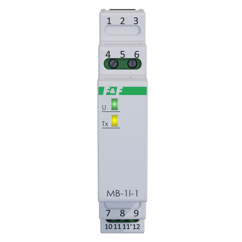 The module continuously measures the current flowing through the measurement input. Readout of recorded current strength, setting of all communication parameters are all carried out through RS-485 port using the MODBUS RTU communication protocol. Power up is indicated by a green LED U light. Valid data exchange between the module and the second device is indicated by a yellow LED Tx light.