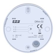 DRM sensor emits and bounces high-frequency 5.8 GHz electromagnetic waves. The sensor detects changes in the reflected waves caused by movement of the object in the area of detection. The sensor detects movement of an object to and from the sensor. Movement in the range of detection will automatically attach the lighting for time set by the user. After this time the lights will be turned off automatically. The motion sensor is equipped with light dependant relay able to attaching lighting during the day. Detection status and standby to attach lights are activated only after dusk. Sensor activation time might be adjust by the user. In addition, there is a possibility of adjustment of the detection area in range 3-10 m (for h= 2.5 m) and the receiver actuation time adjustment to 8 s ÷ 12 min. The inclusion of the receiver is signaled by a shining green LED. Sensor can work indoors. The sensor allows for motion detection by wooden boards, plasterboard panels, glass and plastics. Temperature changes do not affect on motion detection