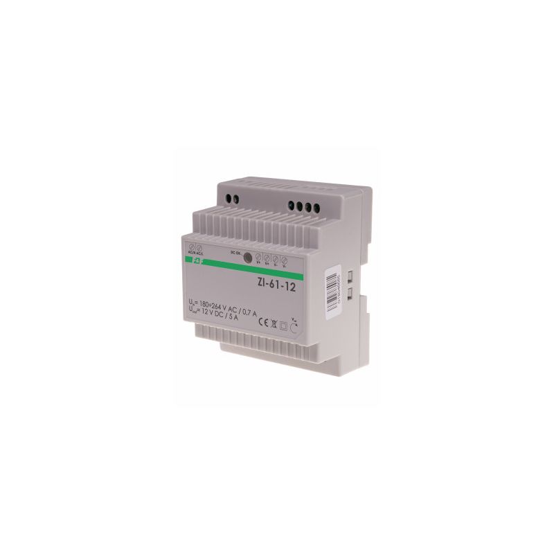 - short-circuit - in case of overload or short-circuit, the output voltage is automatically disconnected. The power supply cyclically attempts to turn on the power supply and when the cause of the protection operation ceases, the rated supply voltage is restored;