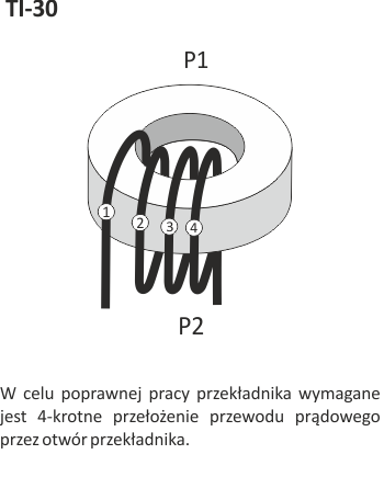 * For correct operation of the transformer, a 4-fold transmission of the current cable through the transformer's opening is required.