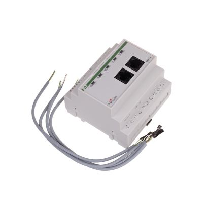 Moduł montowany jest w rozdzielni i zajmuje pole 5 modułów. Napięcie zasilania modułu wynosi 24 V. Do modułu sprowadzone są przewody z czujników temperatury. Moduł pracuje autonomicznie w oparciu o szczegółowe ustawienia wprowadzone z panelu dotykowego (niezależnie ustawiana temperatura i histereza dla każdego pomieszczenia). Na podstawie tych ustawień steruje bezpośrednio modułem wykonawczym, który reguluje temperaturę w pomieszczeniu.