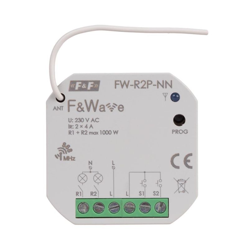 Przekaźniki FW-R1P-NN oraz dwukanałowy przekaźnik FW-R2P-NN współpracują z nadajnikami zdalnego sterowania radiowego F&Wave (piloty, breloki) oraz przyciskami lokalnymi. Umożliwiają sterowanie odbiornikami o sumarycznej mocy od 5 do 1000W (**)