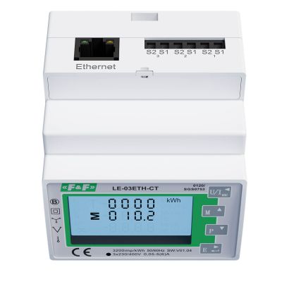 LE-03ETH CT adalah meteran listrik elektronik, multifungsi, bersertifikat (deklarasi MID), cocok untuk pengukuran semi-langsung (menggunakan trafo arus) atau tidak langsung (menggunakan trafo tegangan dan arus). Meteran ini cocok untuk pembacaan jarak jauh melalui port komunikasi Ethernet internal dan dukungan protokol Modbus TCP.