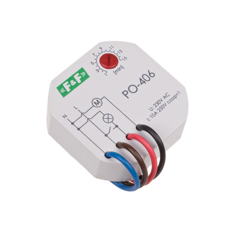 Podanie napięcia sterującego S na przekaźnik powoduje jego zadziałanie i załączenie napięcia na sterowanym odbiorniku. Po zaniku napięcia sterującego działanie odbiornika jest podtrzymywane przez czas podtrzymania t (nastawiany potencjometrem). Po czasie t wyłączenie sterowanego odbiornika nastąpi automatycznie. W przypadku ponownego podania napięcia sterującego S przed upływem nastawionego czasu przekaźnik realizuje swoją funkcje pracy od początku.