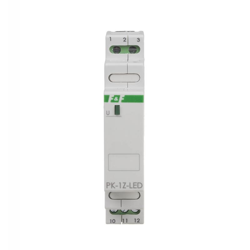Podanie napięcia zasilania na cewkę przekaźnika spowoduje przełączenie styków w pozycję 11-12. Stan ten jest sygnalizowany świeceniem LED zielonej. Po zaniku napięcia zasilania styki powracają w pozycję 11-10.