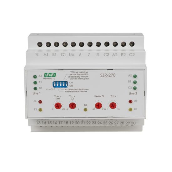 Sterowniksamoczynnego załączania rezerwy przeznaczony jest do kontroli parametrów i poprawności pracy linii zasilających oraz automatycznego przełączania źródeł zasilania obiektu w przypadku spadku parametrów aktualnie załączonej linii zasilającej lub całkowitego zaniku napięcia w tej linii.